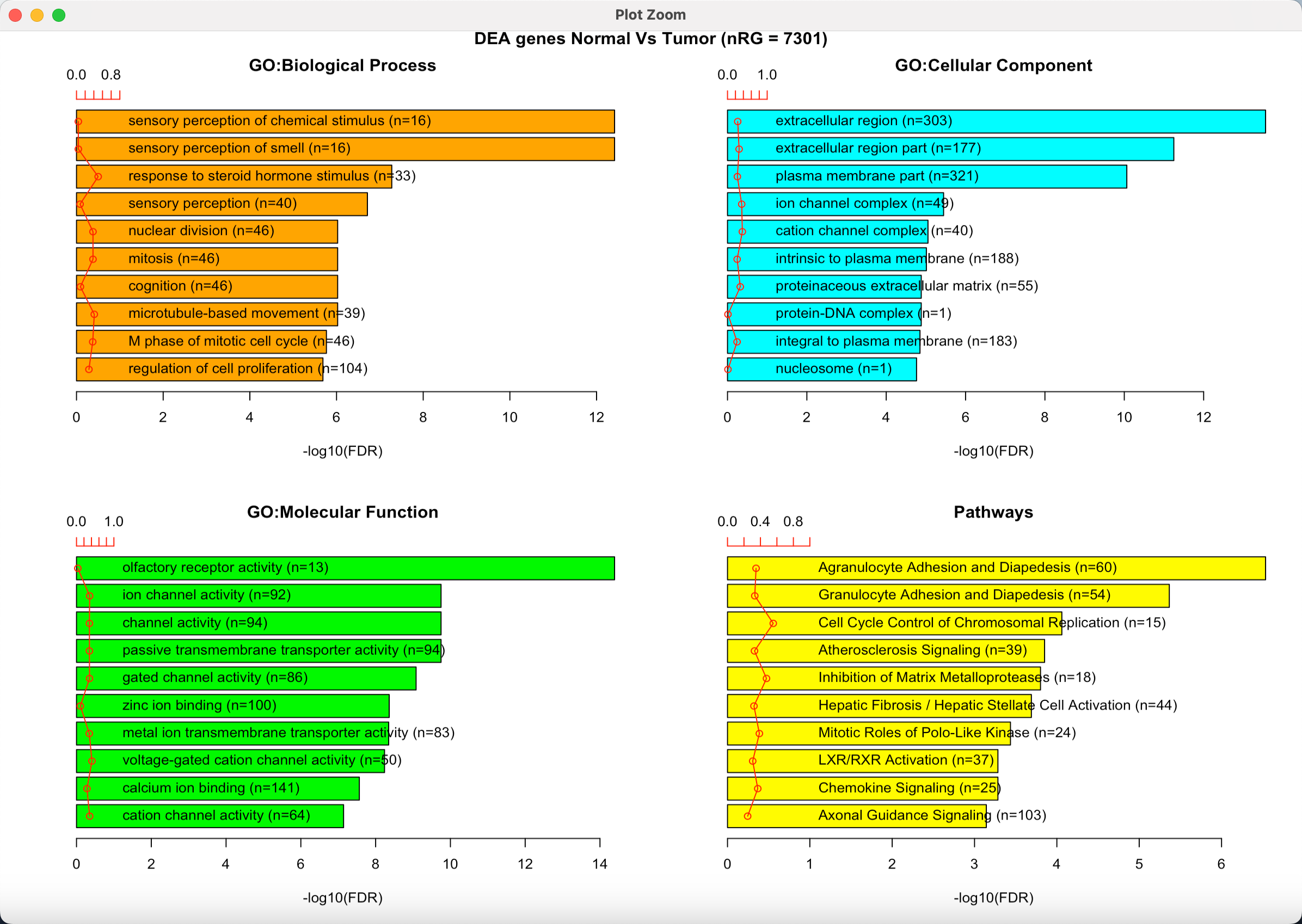 TCGAbiolinks 也提供了一些列的函数,通过封装一些常用的算法来简化分析的流程。例如差异基因、富集分析、生存分析等