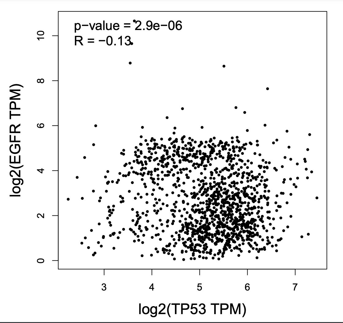 可以看到 TP53 的依赖性与 EDA2R 的表达相关性很高