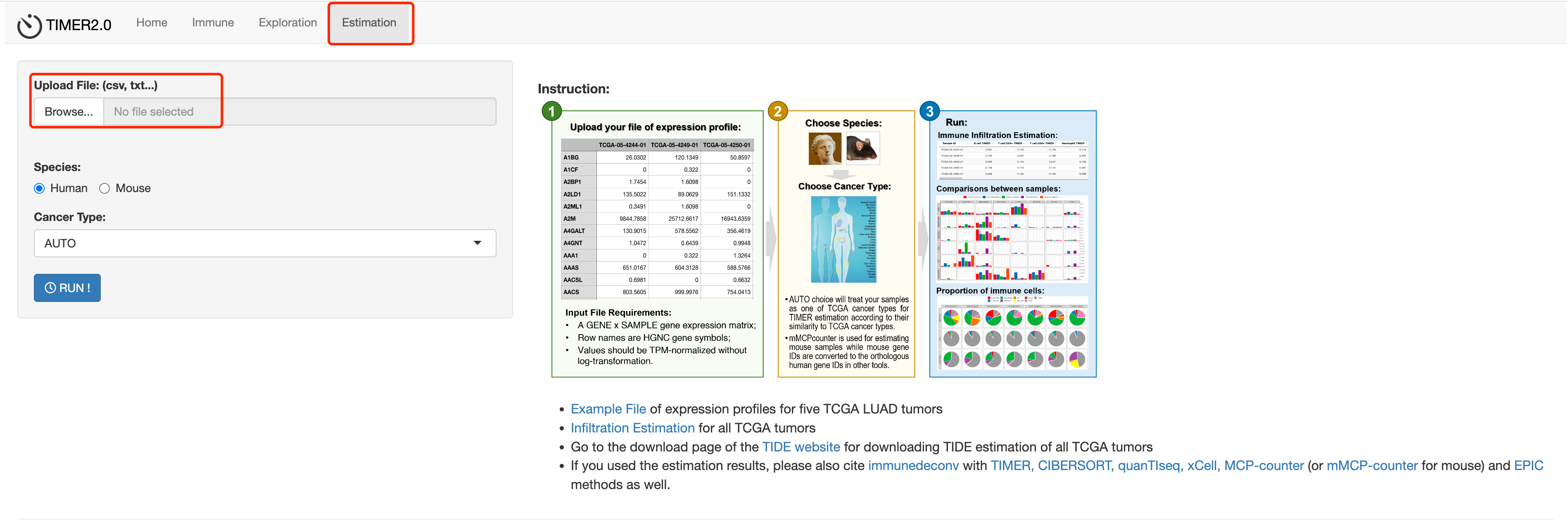最后一个功能是上传自己的表达谱,让它来计算样本中免疫细胞的浸润水平