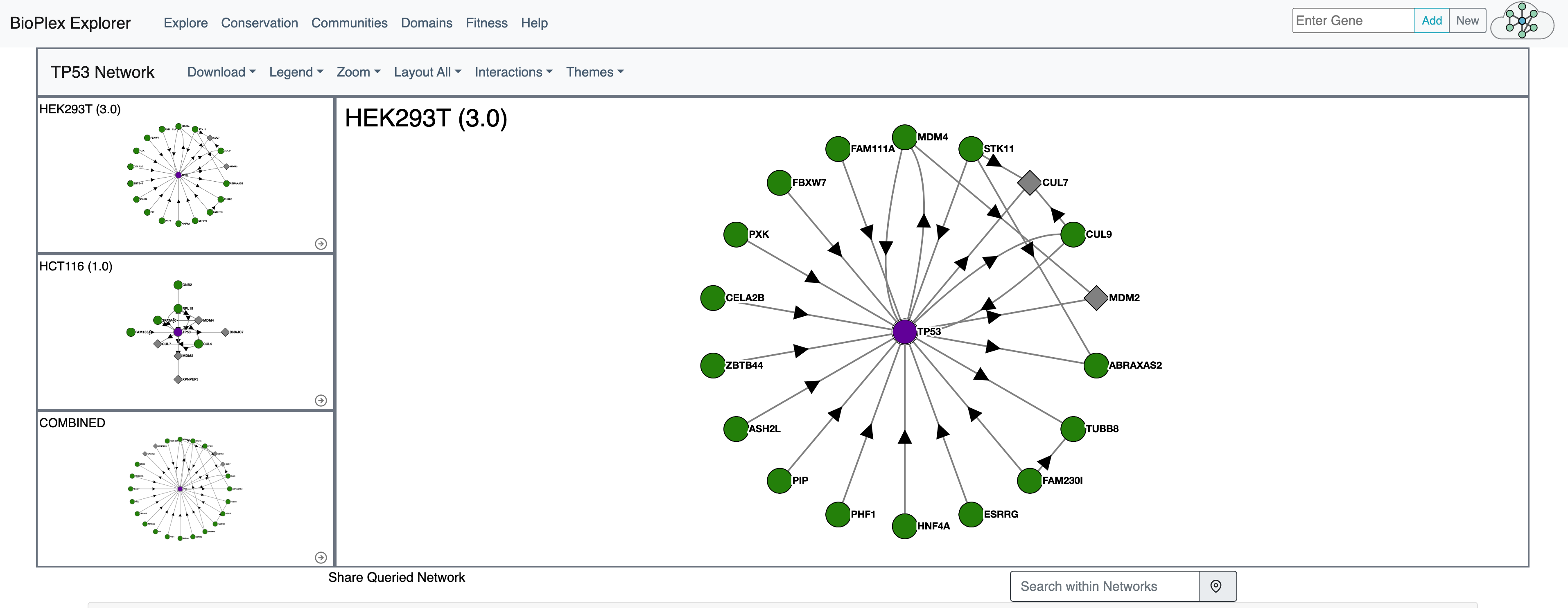 BioPlex 是蛋白质谱分析生成的基因互作网络,可以检索与目标基因直接互作的基因。