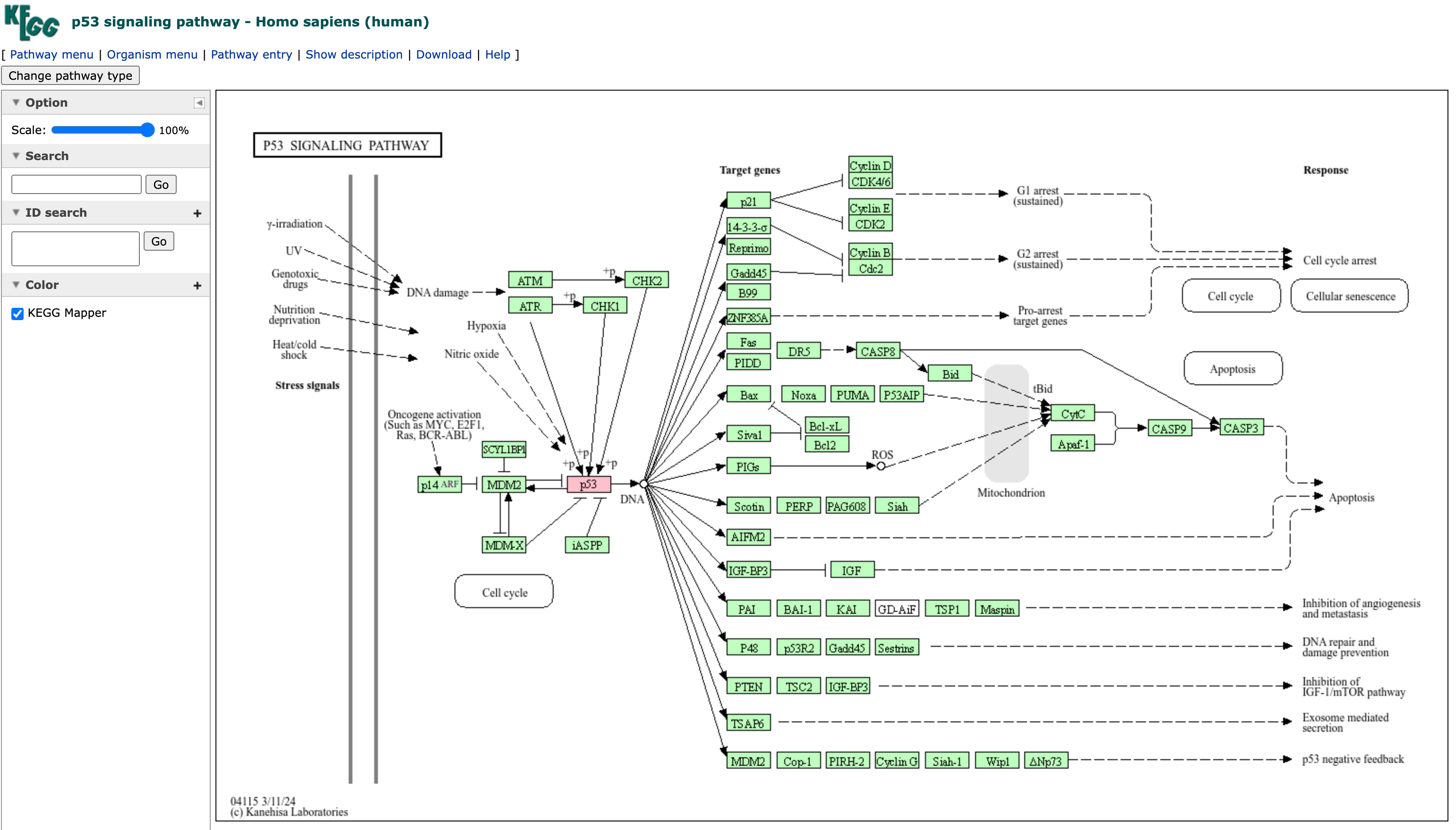 KEGG Mapper – Color 工具是 KEGG 提供的用于检索基因在通路中的位置,可以输入多个基因或上传文件。