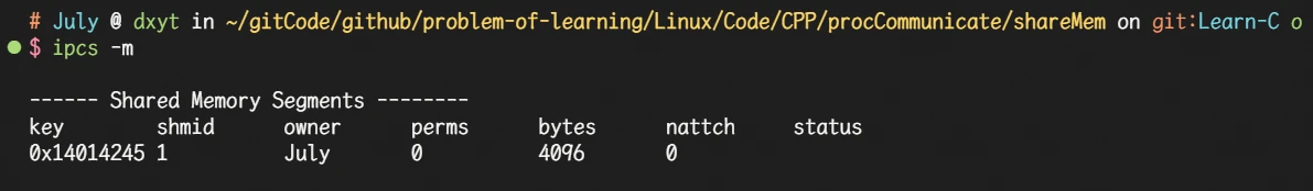 我们可以在命令行使用 ipcs -m 查看操作系统内存在的共享内存: