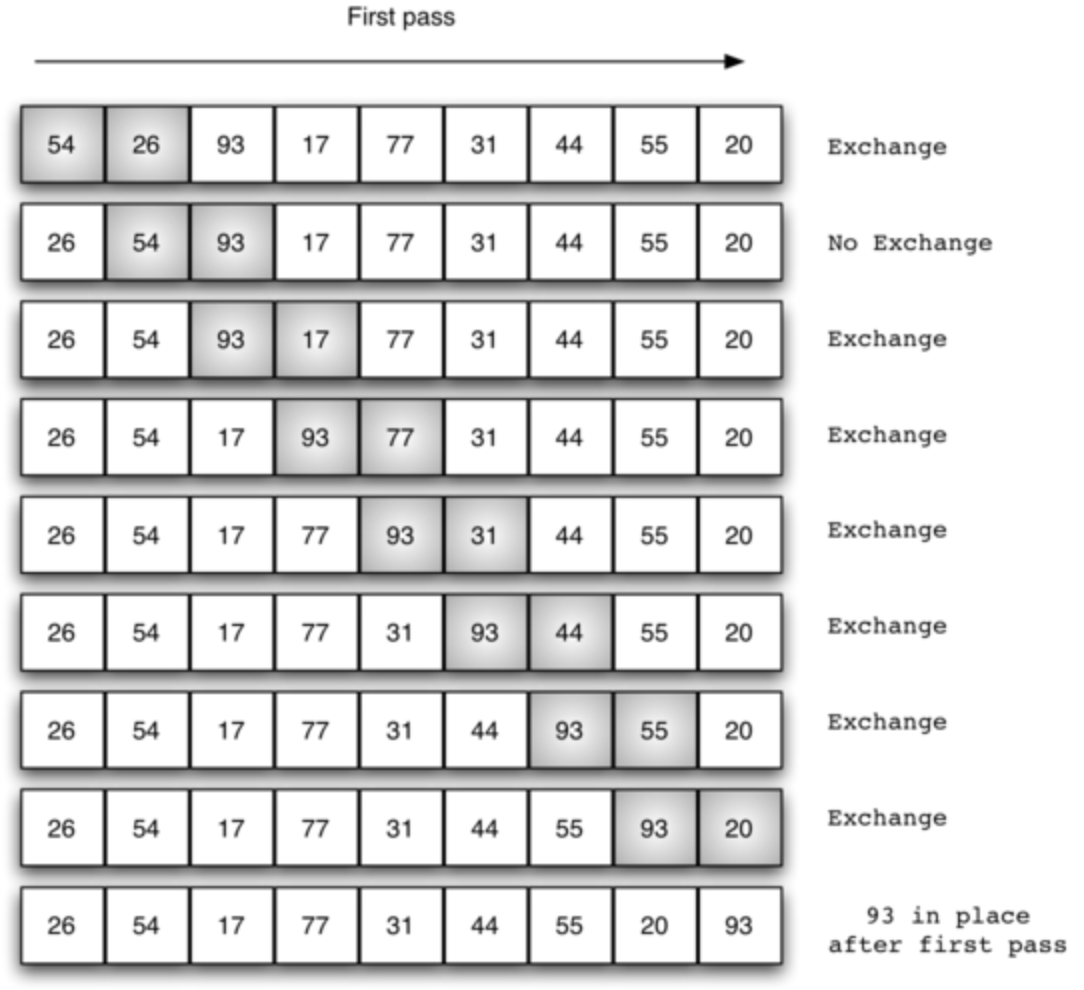 持续每次对越来越少的元素重复上面的步骤,直到没有任何一对数字需要比较。
