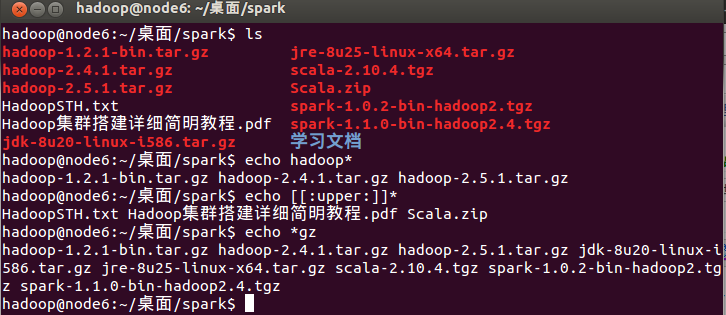 可以发现输出的并不是*而是当前目录下的所有文件和目录名,发生了什么,回想一下,在前面我们介绍过*意味着“匹配文件名中的任意字符”,在这里,shell会将*扩展成相应的文本,就是我们看到的内容。