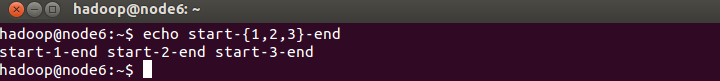 可以看到,花括号扩展可以包含一个称为前导的字符作为开头部分和一个称为符言的结尾部分。话括号里面可以是由逗号隔开的内容,如上面的例子,