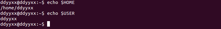 在这里,参数更类似于高级语言中的变量,比如,我们将当前用户的主目录命名为HOME,将当前用户的名字命名为USER,我们可以在终端中输出这些参数的值: