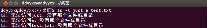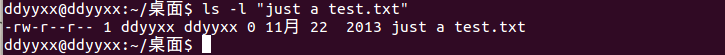 先来介绍第一种引用类型,双引号,将文本放在双引号中,则shell将会把包含在双引号之间的内容看成是一个整体,而不会被空格,制表符和换行符分割。举个例子,如果一个文件的名字为 just a test。我们想要访问他的时候,如果直接输入 just a test,会出现错误: