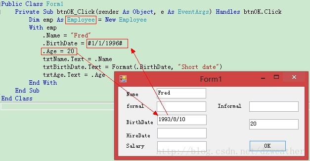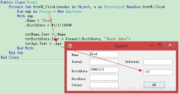 尽管Employee中看不出来有成员Name、BirthDate,但它的确继承来自Person,所以它有这样的成员,故而能用。