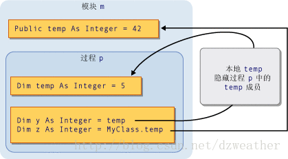 隐藏就如同作用域一样,全局变量在过程中被局部同名变量隐藏。