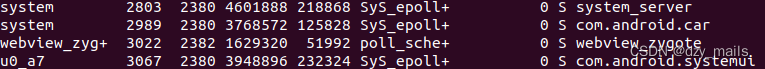 Libraries: /system/lib64/libandroid.so /system/lib64/libandroid_servers.so /system/lib64/libcar-framework-service-jni.so /system/lib64/libcompiler_rt.so /system/lib64/libjavacrypto.so /system/lib64/libjnigraphics.so /system/lib64/libsoundpool.so /system/lib64/libwebviewchromium_loader.so /system/lib64/libwifi-service.so libjavacore.so libopenjdk.so (11)