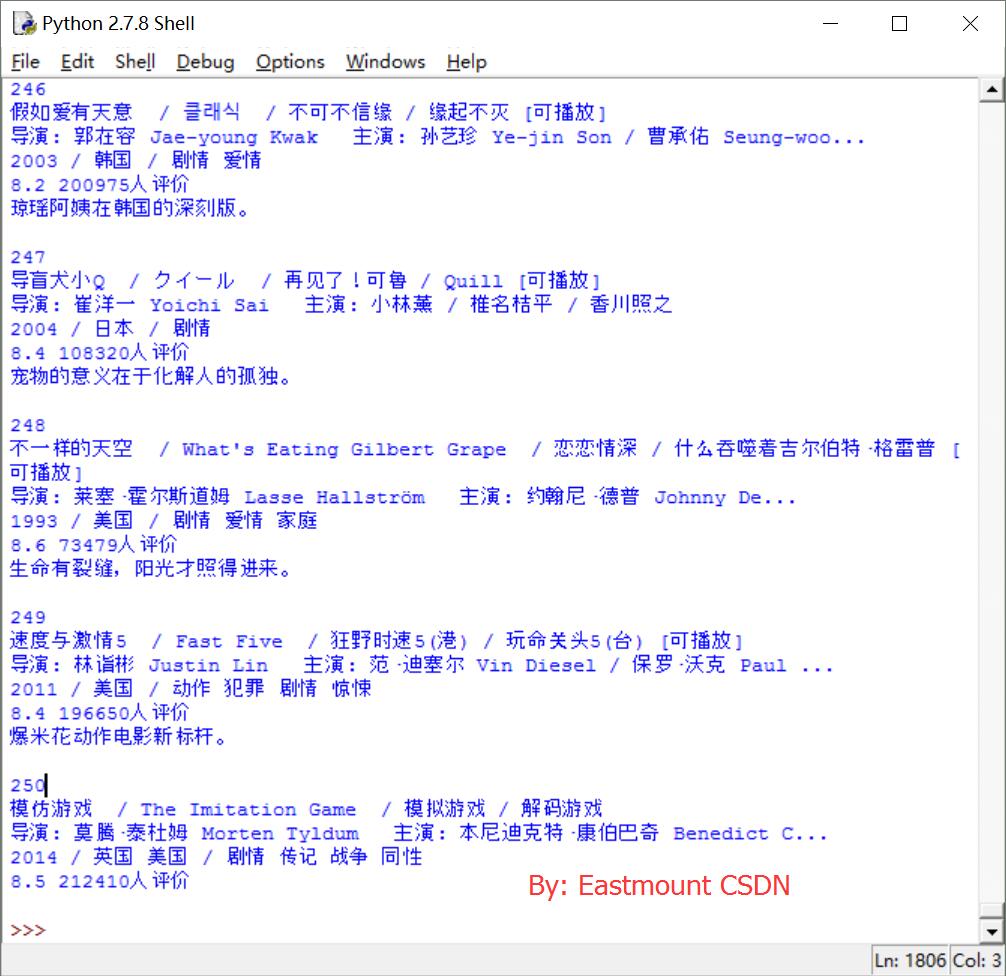 豆瓣Top250电影网址:https://movie.douban.com/top250?format=text