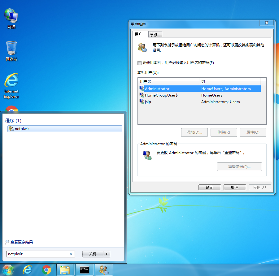 在运行中输入 netplwiz .