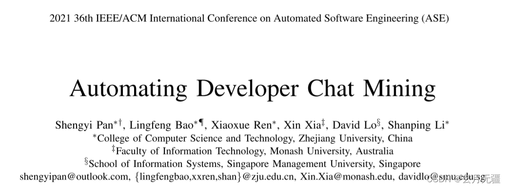 【论文阅读笔记】自动化开发者聊天挖掘 论文标题:Automating Developer Chat Mining原文链接:Automating Developer Chat Mining | IEEE Conference Publication | IEEE Xplore说明:在读研究生为方便记忆梳理学习,手敲论文笔记,概括论文的主要思想背景在开源软件 (OSS) 项目,聊天室中的大多数讨论线程都遵循问答格式,一些开发人员(提问者)提出最初的问题,而其他人(受访者)加入提供答案。这些讨论线程嵌入了丰富的信息,可以满...