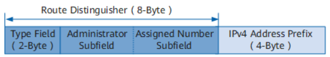 PE从CE学到VPN路由信息后,存放到VPN实例中。同时,为这些标准IPv4路由增加RD,形成VPN-IPv4路由。
