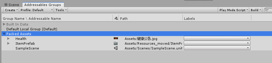分好的Addressables Groups应该是这样(如果这步骤不会,请查看之前文章步骤)