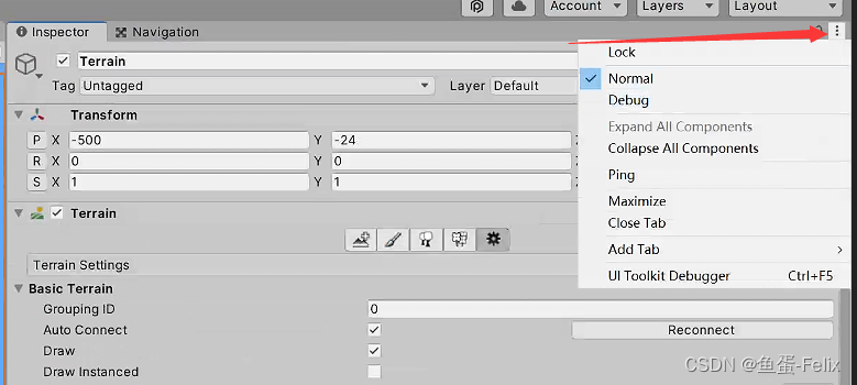 切换到Debug模式,可以暴露出来Terrain Data参数,替换即可。