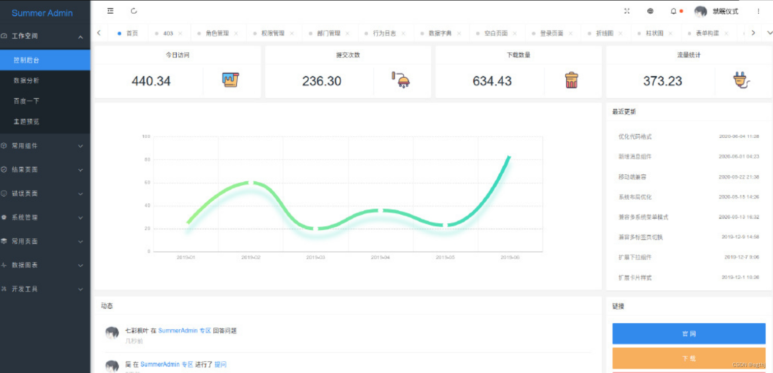 正文:一款漂亮有质感的 layui后台模板SummerAdmin,漂亮有质感,完整的页面,有良好的设计语言,适合后台二次开发用,多色彩多主题切换,多标签,标签自带完整的关闭功能,表单构建功能,适合快速开发。程序:wwwu.lanzouw.com/iCqh805cjn8d图片:权限页面:纯白主题:登录页面:...