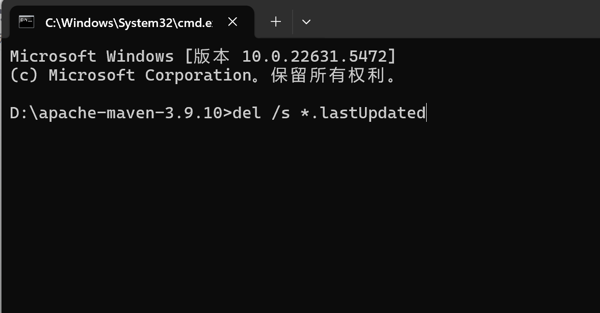 2.通过在maven根目录下打开xcmd输入命令批量递归删除指定目录下的 .lastUpdated 文件,删除之后重新加载项目即可。