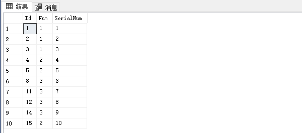 判断num是连续的,则将表按照两种方式排序,按照id排序得SerialNum