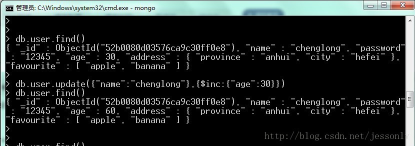db.user.update({"name":"chenglong"},{$inc:{"age":30}})