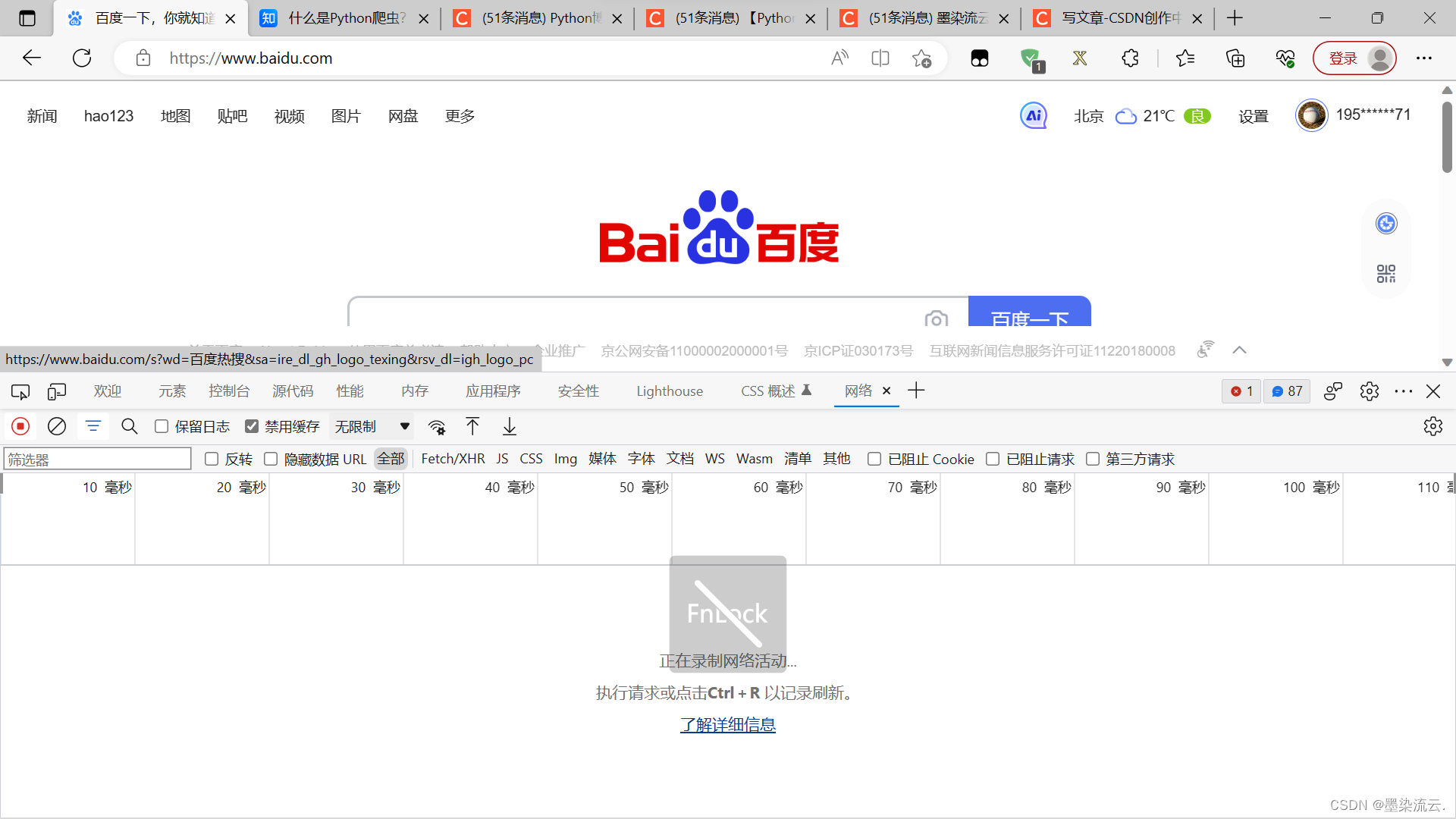 对于网页端而言,获取数据接口相对来说是比较简单的,常用的浏览器,如Chrome,Edge,Firefox浏览器都有抓包功能,可以直接按F12开启开发者模式