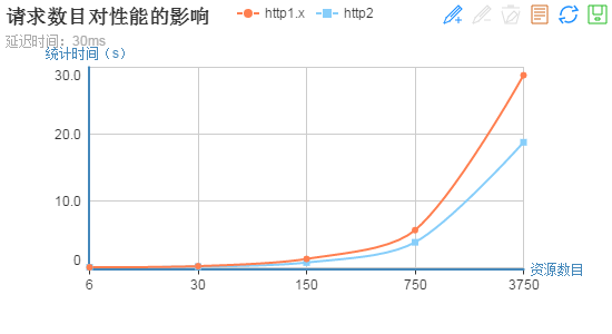 统计时间(s)http1.x | 0.07 | 0.24 | 1.32 | 5.63 | 28.82 |