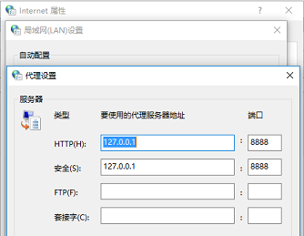 设置系统代理的打开方式为:控制面板→Internet选项→连接→局域网设置→代理服务器。