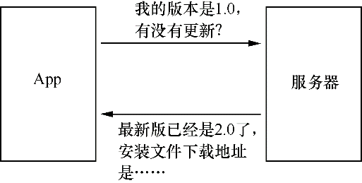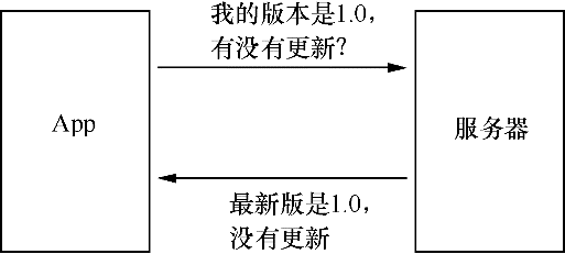 App升级的时候,App会发送一个HTTP请求,来问服务器有没有最新版。如图2-26所示,如果没有最新版,服务器返回的HTTP响应中会说没有更新。