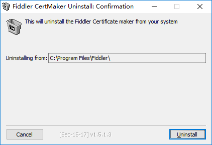 第2步:卸载证书。找到Fiddler的安装目录,其中有个unCert.exe文件。如果没有unCert.exe就不需要卸载,如图2-16所示。