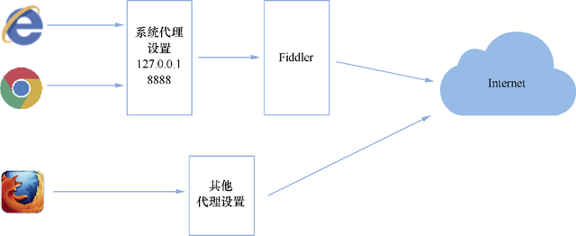 Fiddler能抓包是因为它是一个代理服务器。需要抓包的程序必须把代理指向Fiddler才行。如果浏览器抓不到包,可能是因为浏览器的代理设置没有指向Fiddler。我们可以先重启Fiddler,然后查看浏览器的代理服务器设置,或者换不同的浏览器试试。