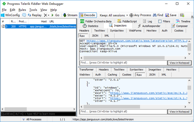 我们用Fiddler伪造一个HTTP响应就可以了。可以用下断点的方式修改HTTP响应,或者用Fiddler中的AutoResponder。接下来以坚果云为例介绍一下升级。