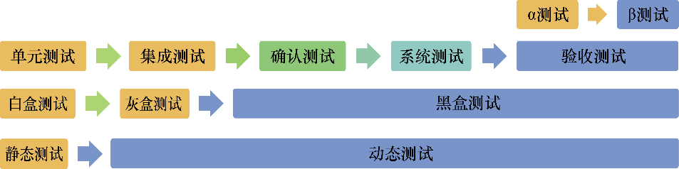 众所周知,软件测试和软件开发相辅相成,因此按照开发阶段划分相对来说应该最容易了。按照开发阶段,软件测试的划分如图1-10所示。