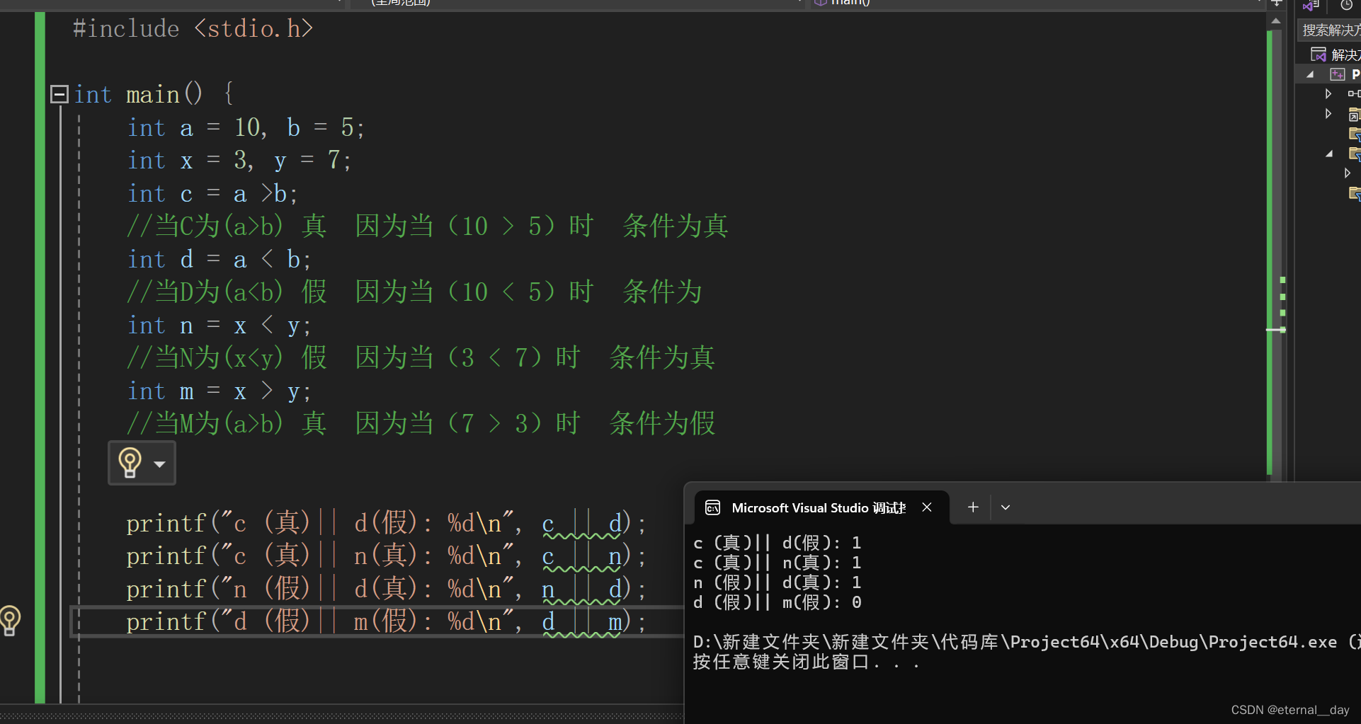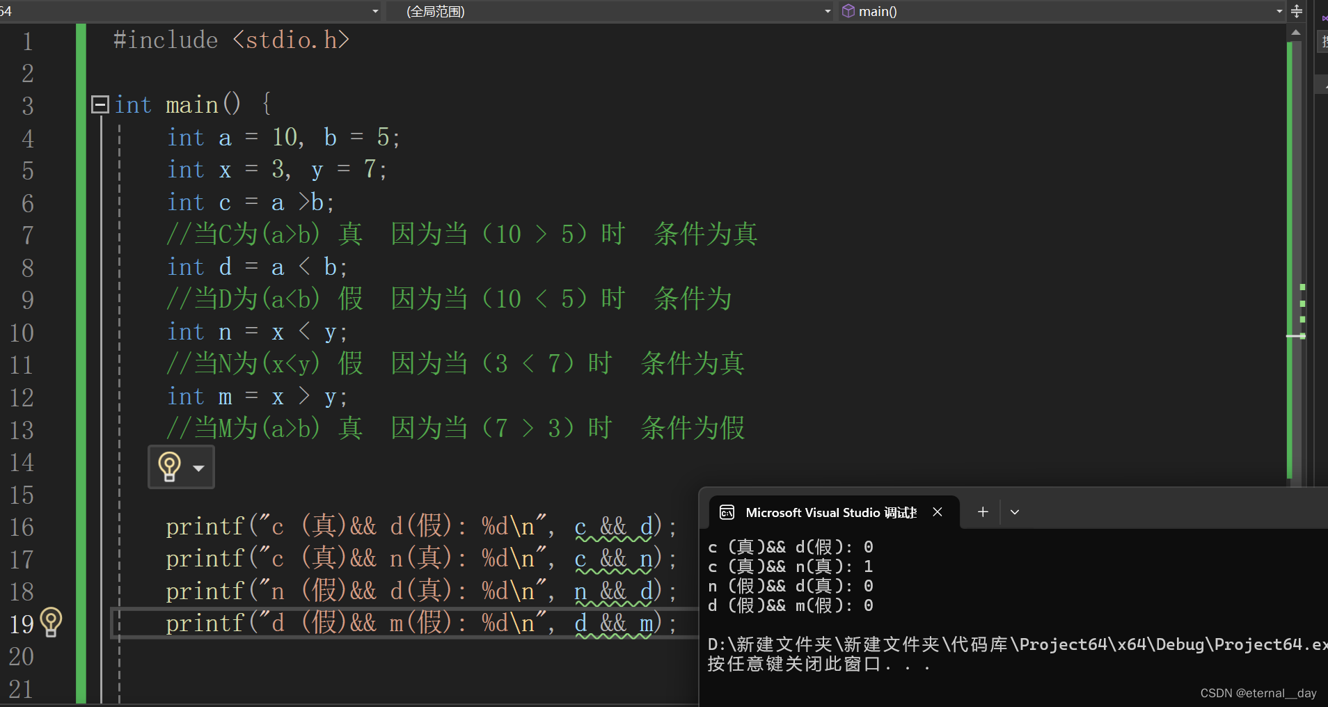 当且仅当两个操作数都为真时,逻辑与运算结果才为真。 如果两个操作数都为真,则返回真(非零);否则返回假(零)。 如果第一个操作数为假,第二个操作数将不会被求值(短路求值)。