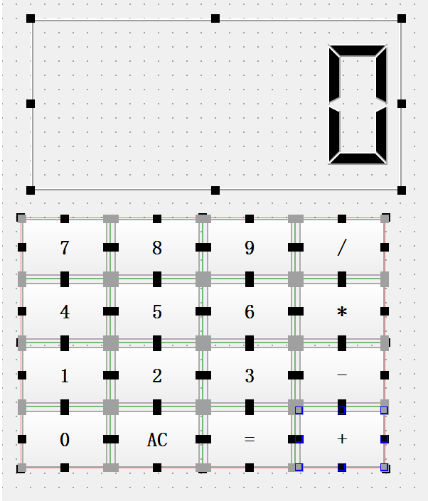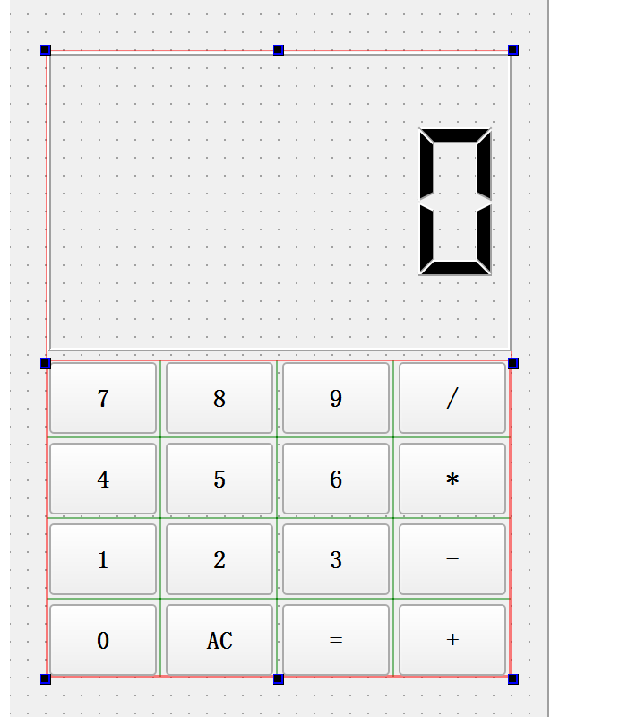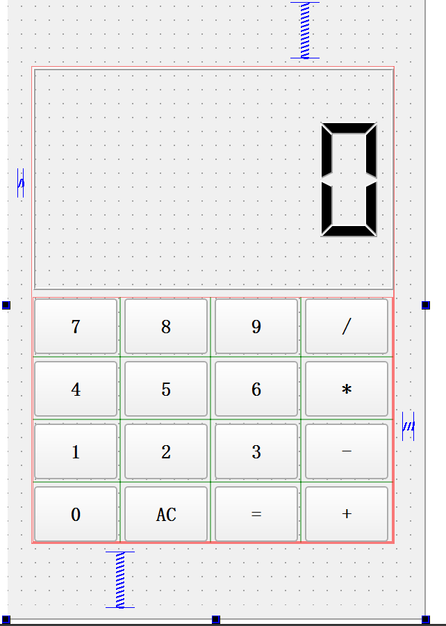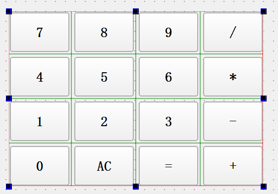 全选显示屏和16个按钮,如下第一图,再点垂直布局后,鼠标拉伸至适合大小,如下第二图: