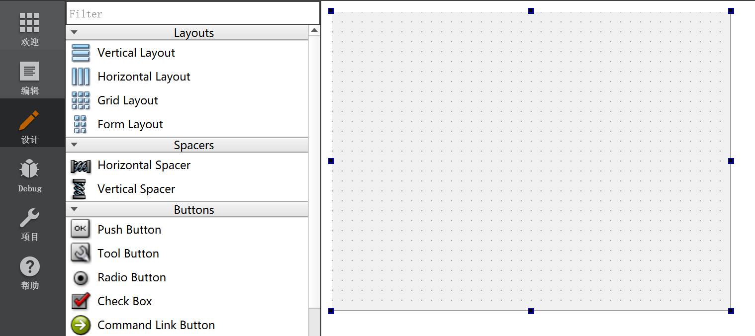 打开Forms下calculator.ui,下面进行计算器的ui界面设计:
