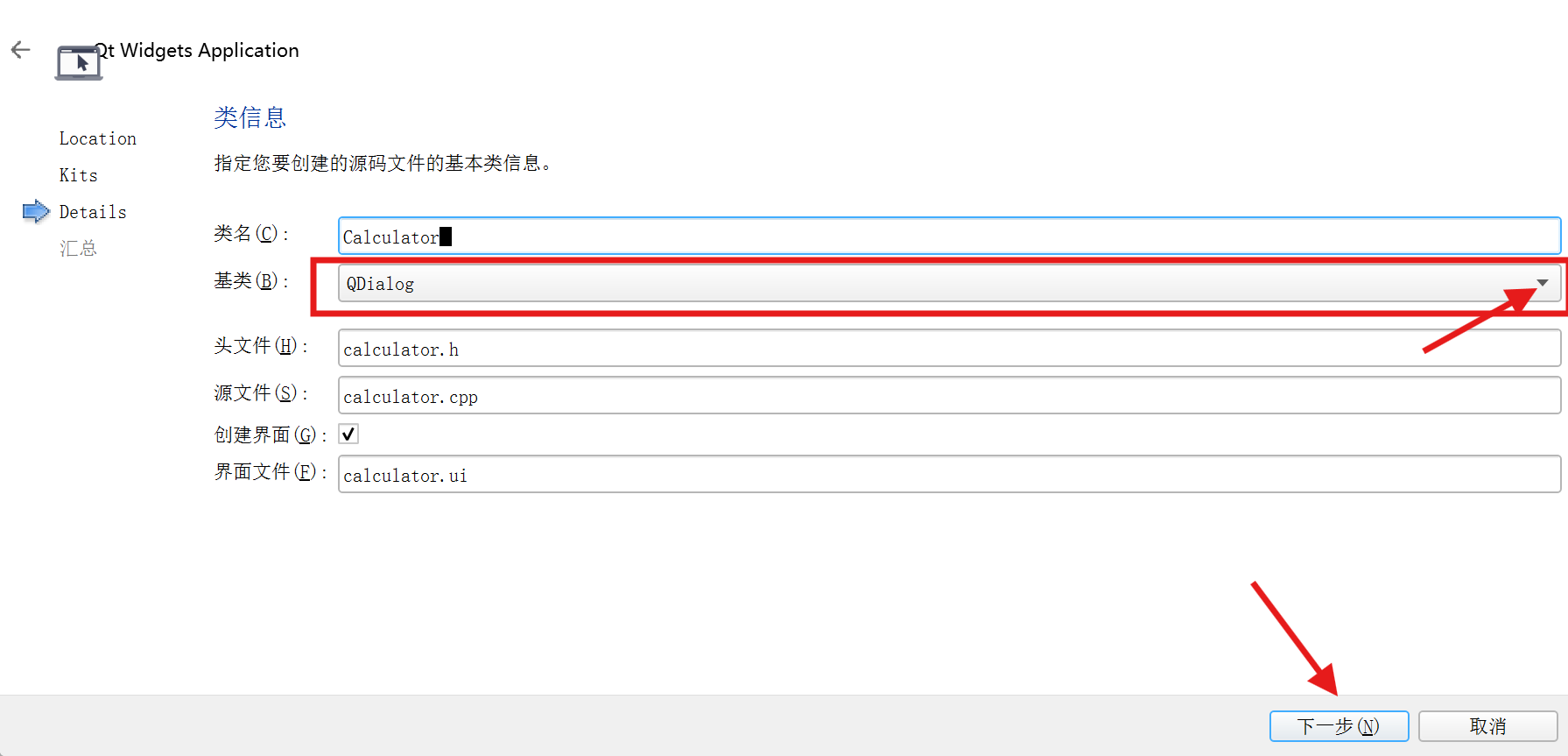 参照前序博文:18-嵌入式Linux GUI基础_linux gui开发-CSDN博客 中“三、创建一个Qt工程 ” 的” 2. 创建工程“,不过基类在这里选择“QDialog”,创建过程如下截图。