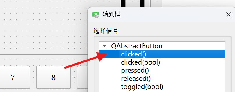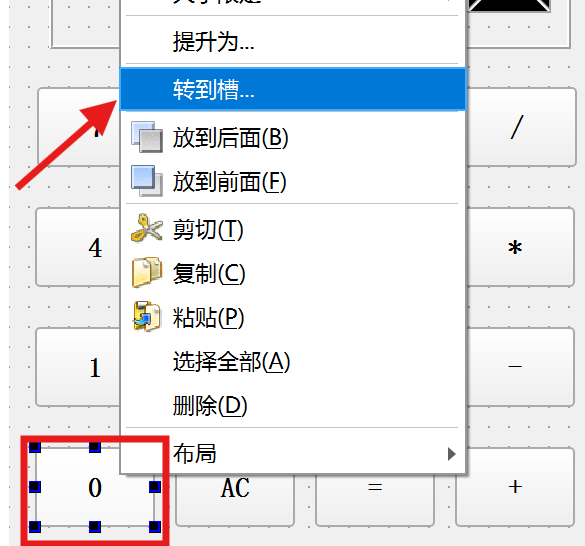 接下来,回到ui界面,来添加槽函数,右键数字“0”按钮,选择“转到槽”: