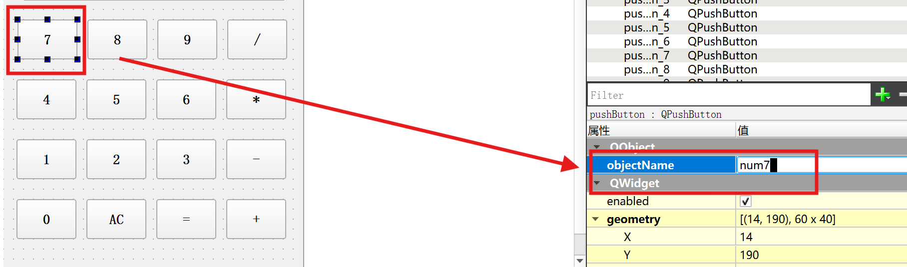 修改所有按钮的变量名称,并让显示与变量名称一一对应,如下图“7”的设置,其它类似: