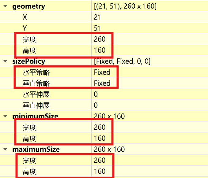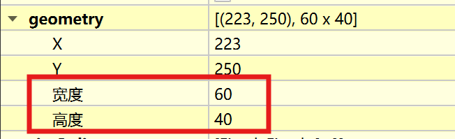 修改显示屏的大小属性,属性类别同按钮,如下图: