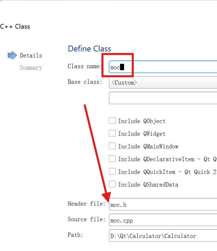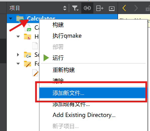 分别在calculator.h 头文件和calculator.cpp 源文件自动生成如下代码: