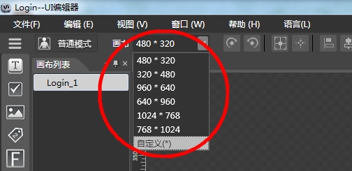 4.点击画布,更改界面大小为你的游戏的界面的大小