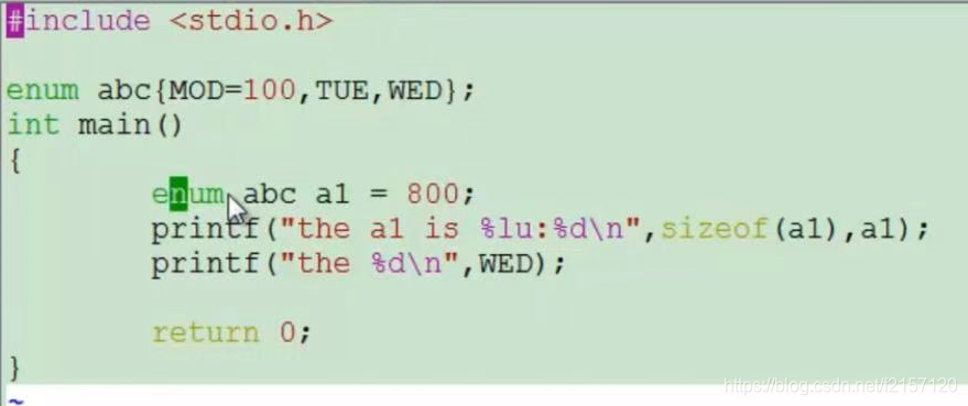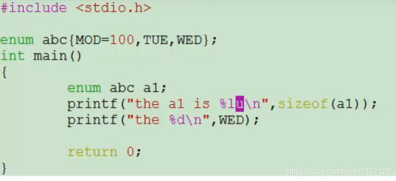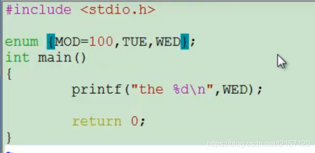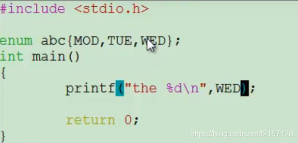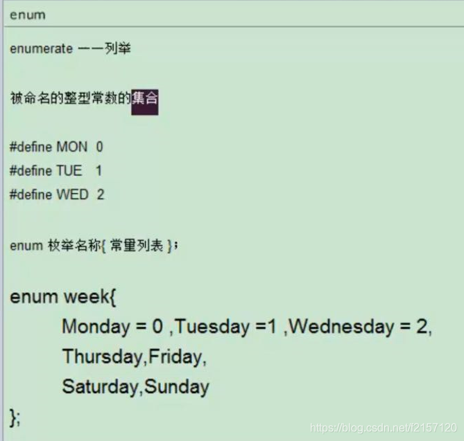枚举类型:与宏定义的作用相同,只是方便程序员更清楚的理解各种取值的含义。默认第一个元素(宏)定义为0,第2个元素(宏)定义为1,...
