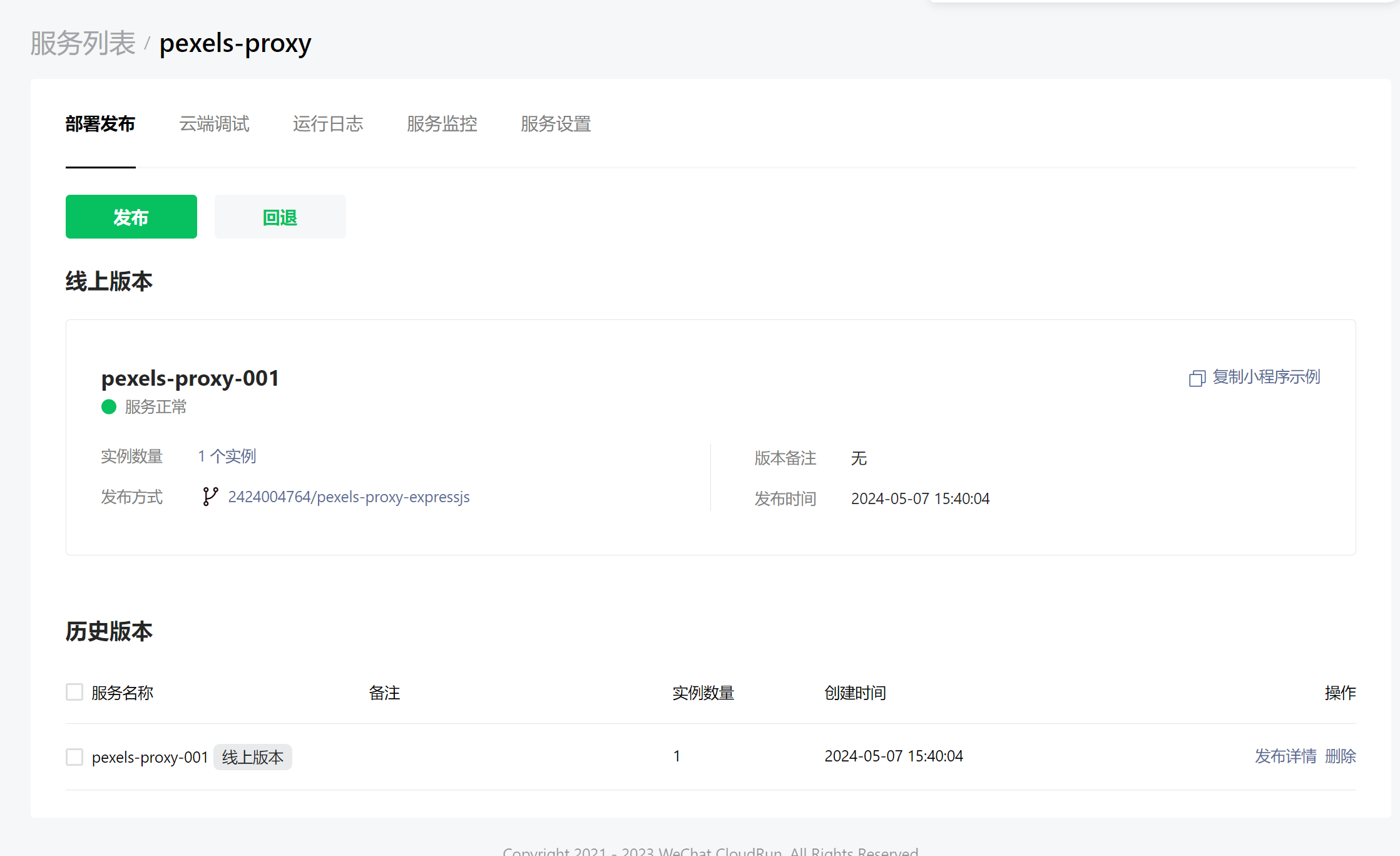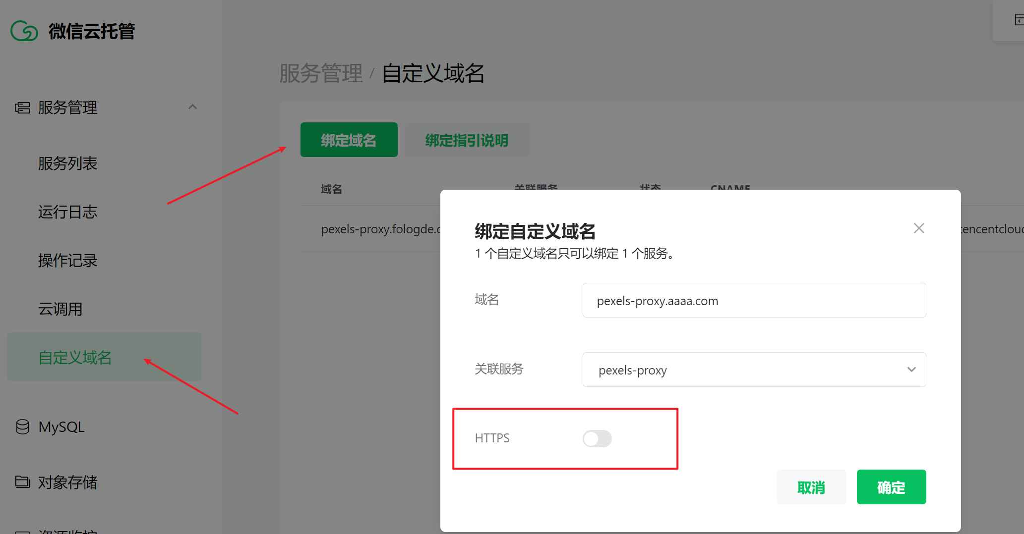 背景:我要在小程序上显示pexels.com上的图片,然后我得先把pexels.com的域名添加到小程序的request合法域名中,但是pexels.com是国外的,在国内没有备案所以添加不了。解决方案就是:用一个已经备案好的域名进行转发,转发的服务器我选择的是微信云托管,备案好的域名还需要ssl,没有的话本文会讲到如何申请一个免费的ssl证书。