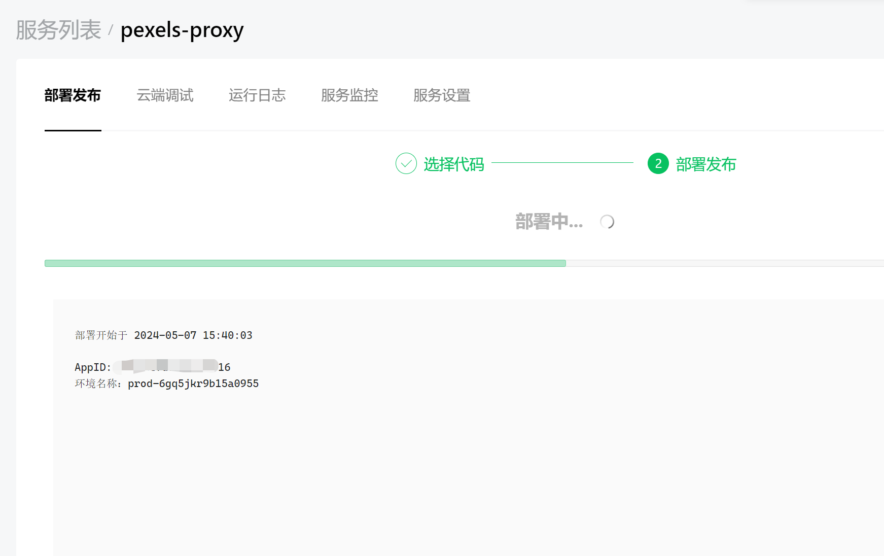 等待部署完成,一般这个步骤几分钟左右,部署好是这样的: