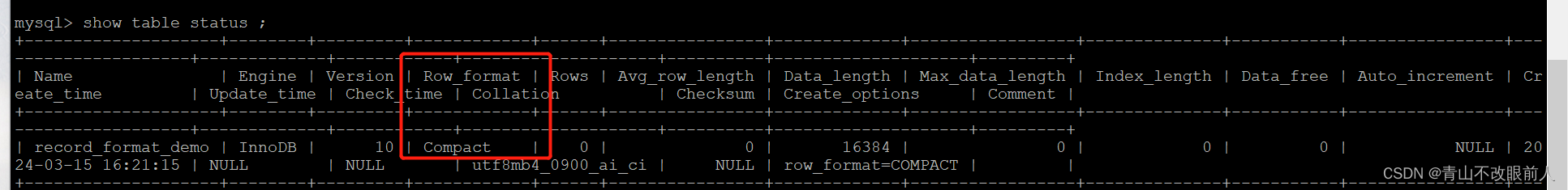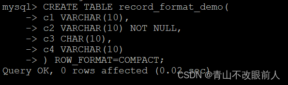 例如;我们现在新建一个demo表,可行在我们的建表语句中指定行格式。