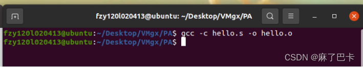 命令:gcc -S hello.i -o hello.s