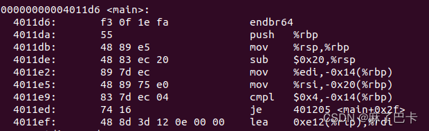 在原程序中,通过‘atoi(argv[3])’将字符串类型的argv[3]转换成了整型。在编译后的文件中,首先将字符串转存到寄存器rdi中,之后将其作为一个参数,调用atoi实现类型的转换。