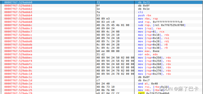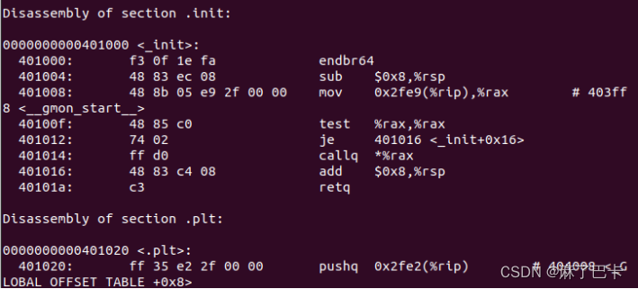 而在下文对数组内容进行输出时,通过将字符串数组内容保存到寄存器rsi和rdx后,传递给printf函数,实现对内容的输出。