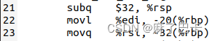可以看到,argc作为第一个参数通过寄存器edi传递进来,并储存在了栈里。