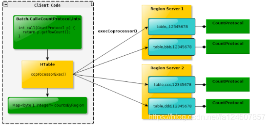 HBase 将利用底层 cluster 的多个节点并发执行求最大值的操作。即在每个 Region 范围内 执行求最大值的代码,将每个 Region 的最大值在 Region Server 端计算出,仅仅将该 max 值返回给客户端。在客户端进一步将多个 Region 的最大值进一步处理而找到其中的最大值。